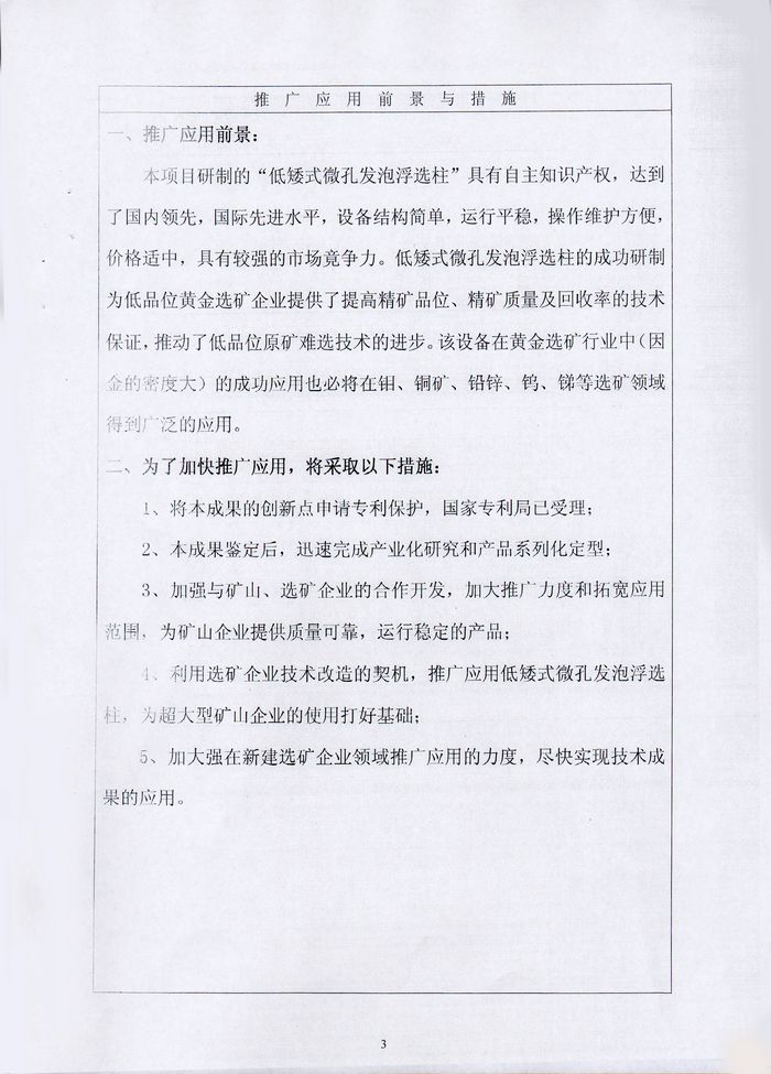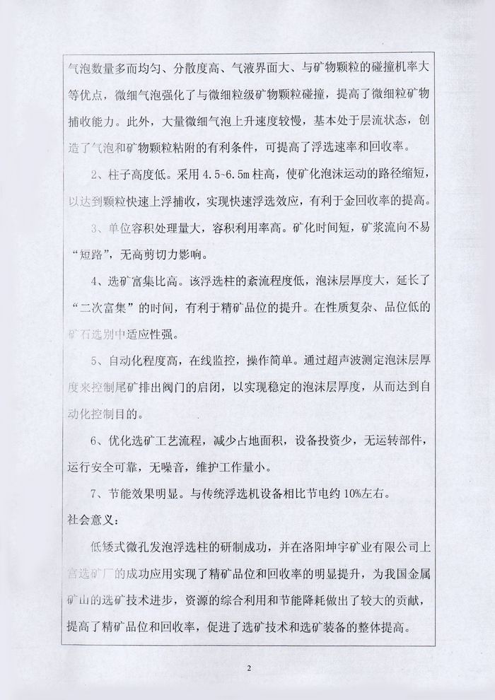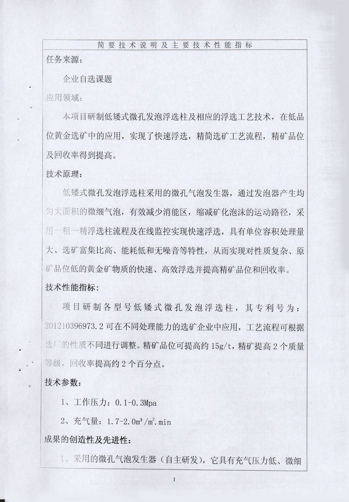 洛陽(yáng)昶威低矮微孔發(fā)泡浮選柱科技鑒定成果
