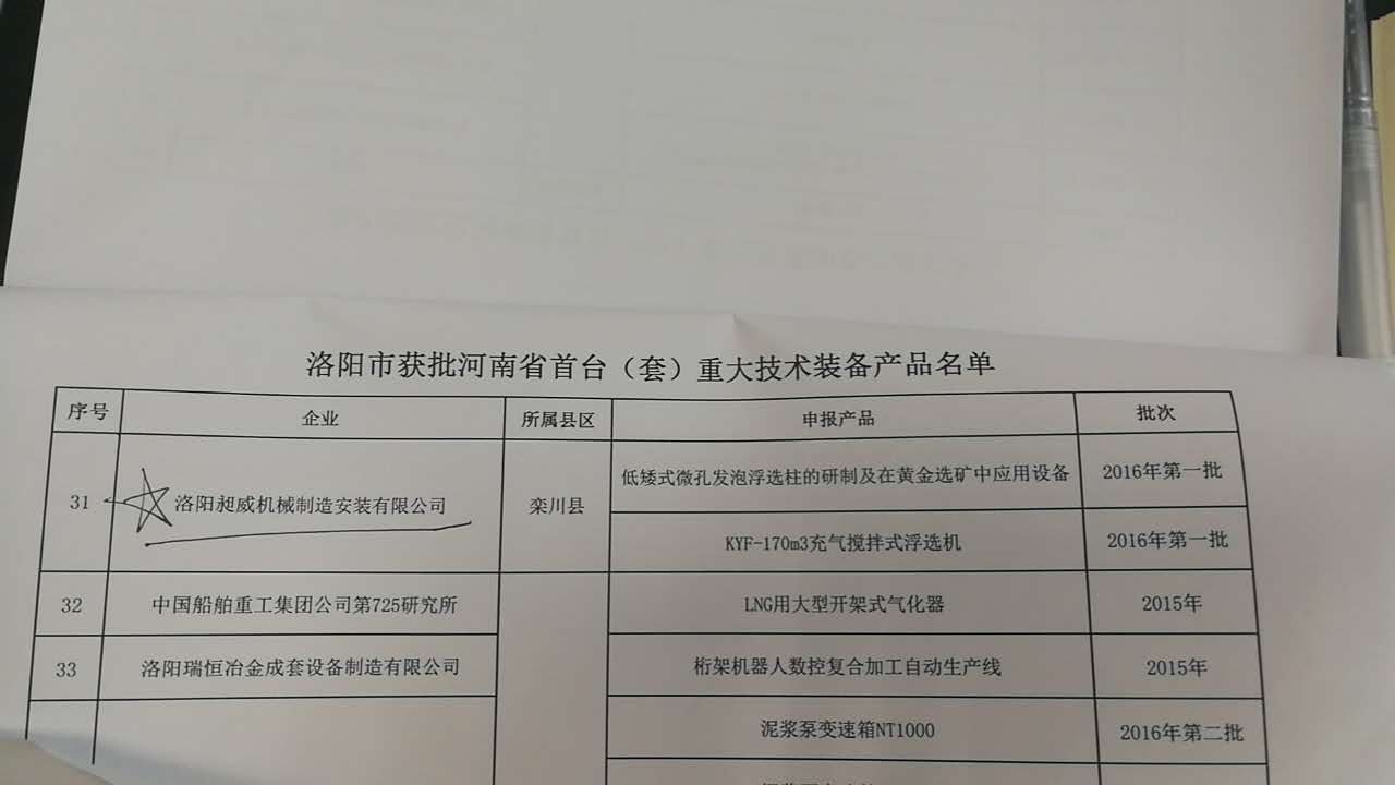 慶賀我公司KYF-170m3充氣攪拌式浮選機(jī)和低矮式微孔發(fā)泡浮選柱的研制及在黃金選礦中應(yīng)用設(shè)備成功進(jìn)入河南省工信委首臺(tái)(套)平臺(tái)